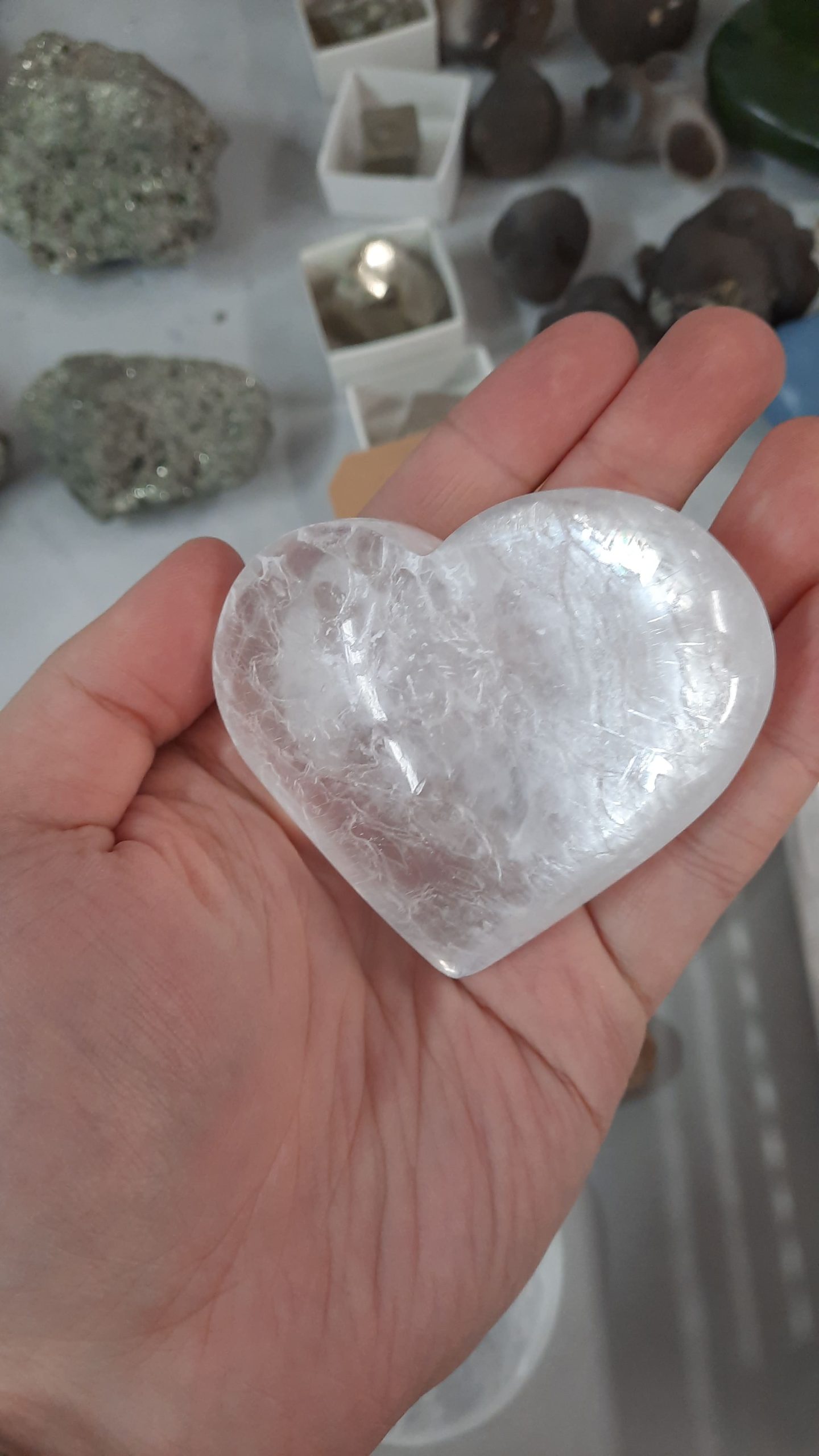 Srček iz čistega selenita (drugo ime Marijino steklo) velikosti cca 7x6cm